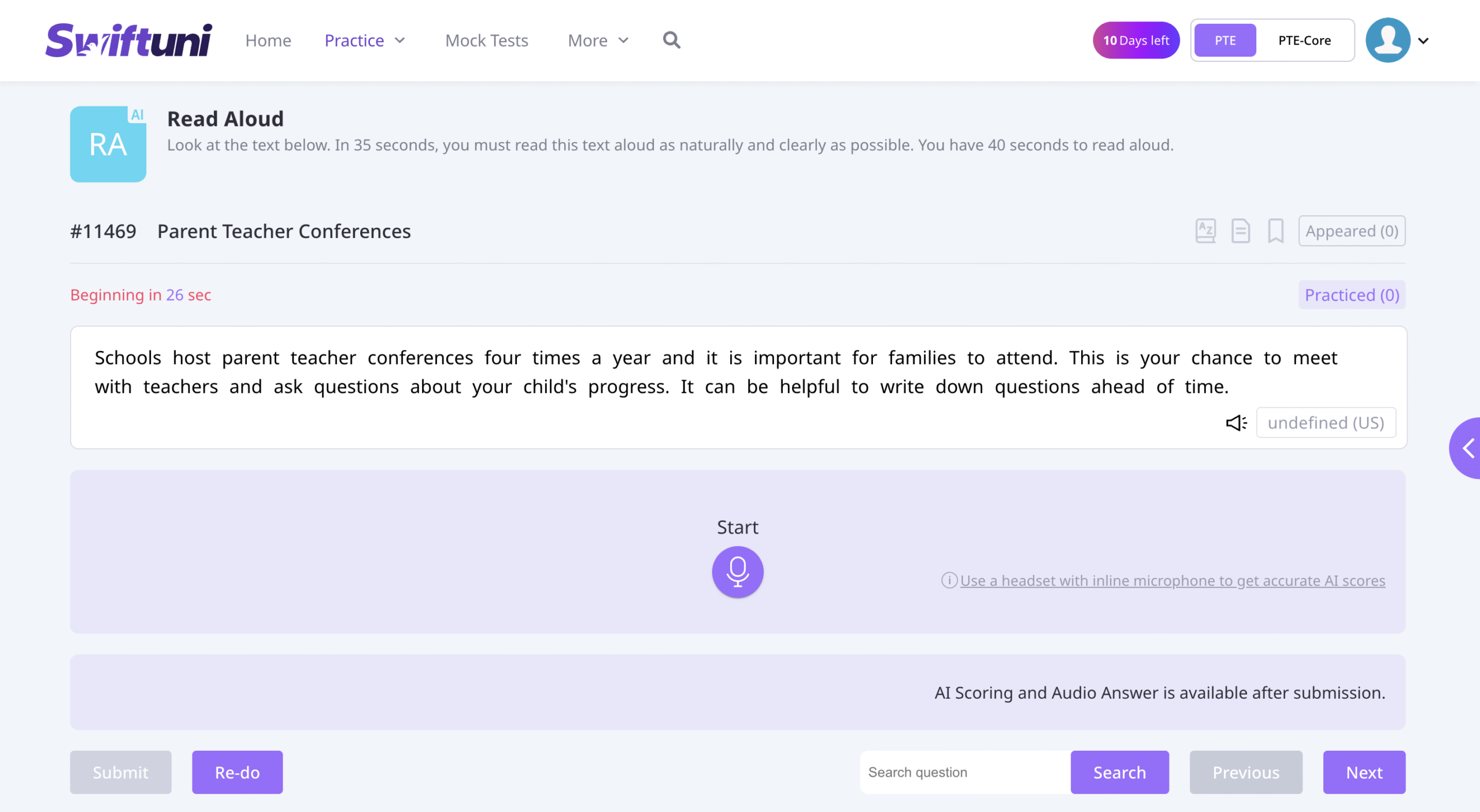 Boost your PTE & IELTS scores with AI-powered practice on Swiftuni. Experience real exam simulations, instant feedback, and smart learning tools start free today!